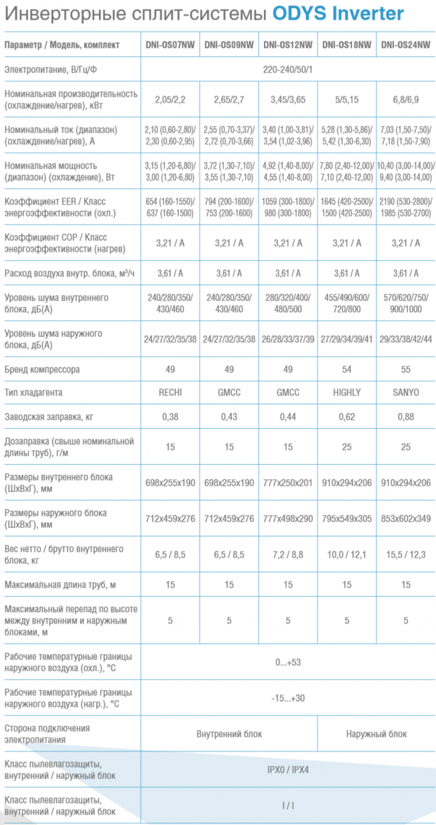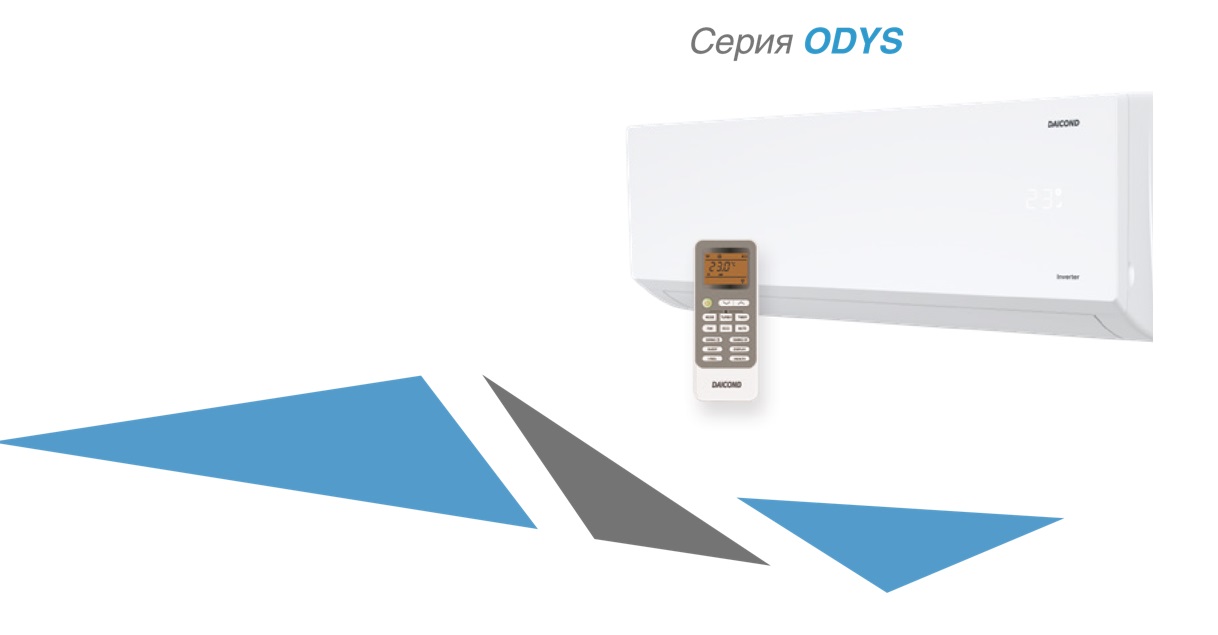 Инверторные сплит-системы DAICOND серии ODYS Inverter — это надежное и энергоэффективное решение для создания комфортного климата в помещении в любое время года. Все модели соответствуют классу энергоэффективности A и работают в четырёх режимах: охлаждение, обогрев (до -15 °C), вентиляция и осушение.